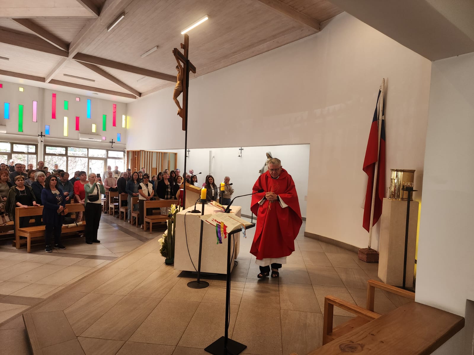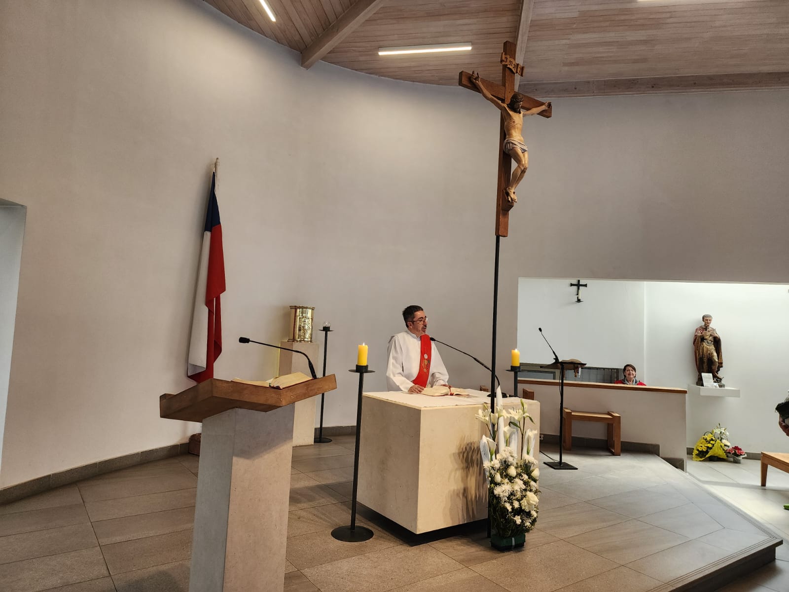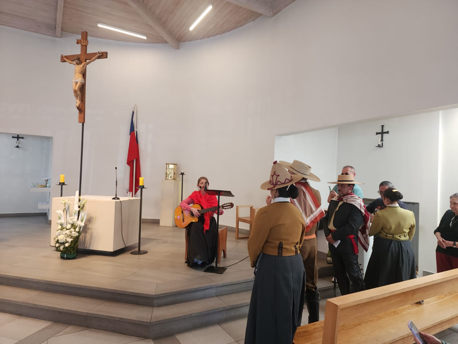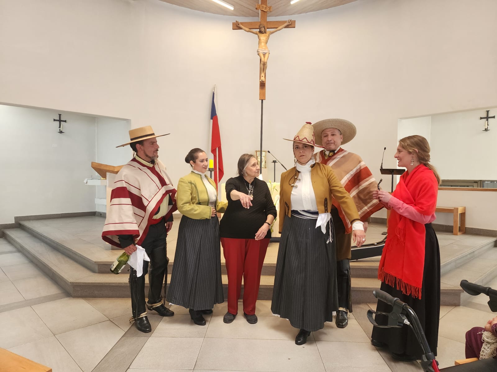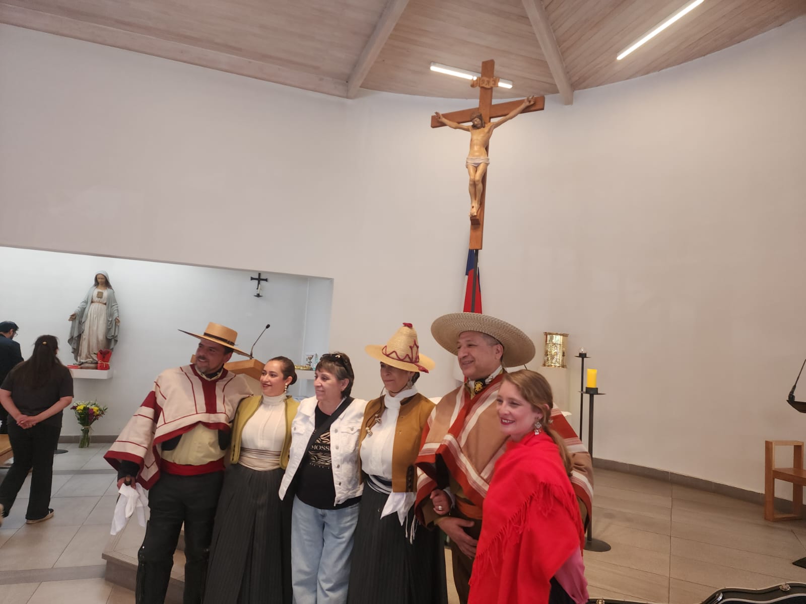 Este viernes 19, además de las eucaristías y liturgias de los horarios acostumbrados, con ocasión de las festividades patrias contamos con la presencia del grupo Palomar, quien a las 12:45 horas, una vez finalizada la eucaristía, nos deleitó con un esquinazo folclórico que fue acompañado animosamente por los peregrinos presentes.