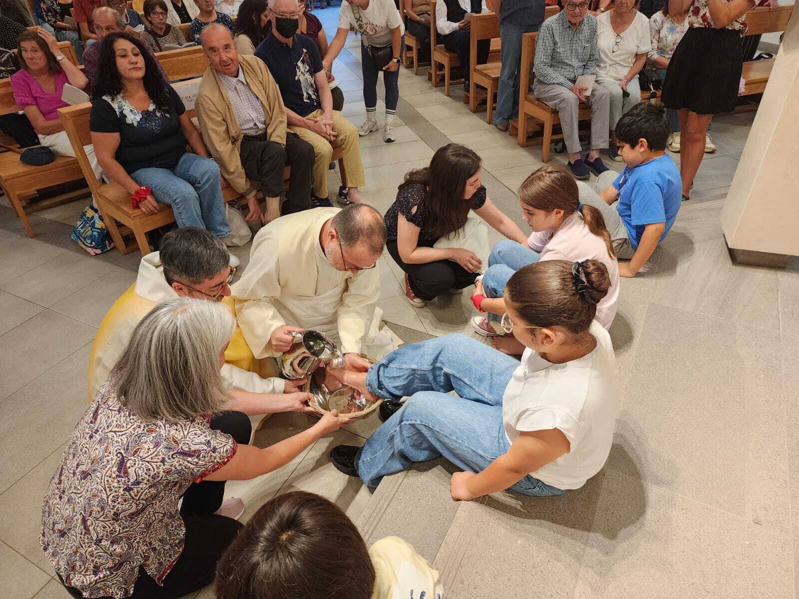 Durante la Cena, cuando el demonio ya había inspirado a Judas Iscariote, hijo de Simón, el propósito de entregarlo, sabiendo Jesús que el Padre había puesto todo en sus manos y que Él había venido de Dios y volvía a Dios, se levantó de la mesa, se sacó el manto y tomando una toalla se la ató a la cintura. Luego echó agua en un recipiente y empezó a lavar los pies a los discípulos y a secárselos con la toalla que tenía en la cintura.