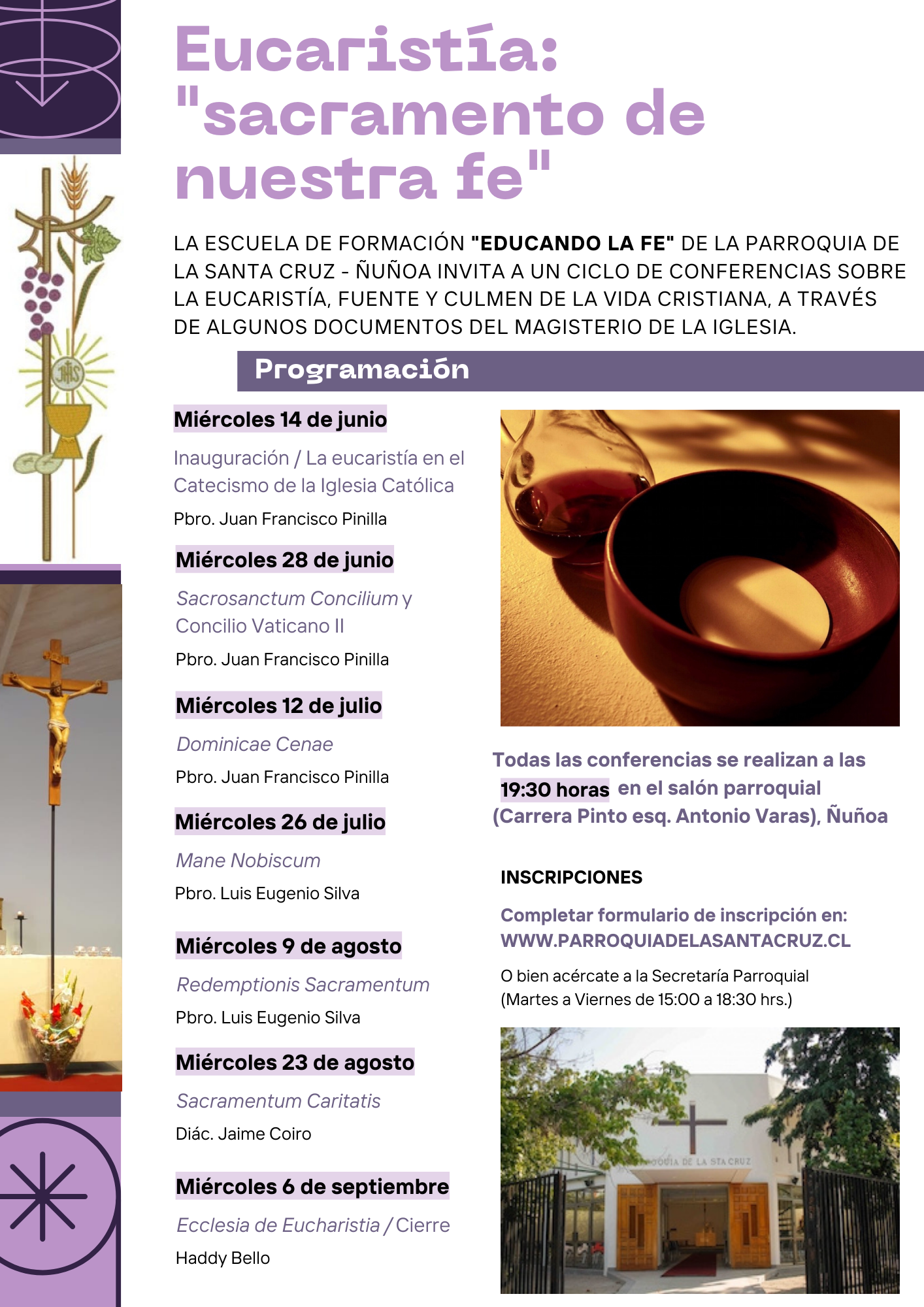 Con una reflexión sobre los luminosos aportes de Juan Pablo II a la teología eucarística continuó este miércoles 26 de julio el ciclo de conferencias «Eucaristía: sacramento de nuestra fe», impartido por la escuela de formación “Educando la Fe” de la Parroquia de la Santa Cruz.